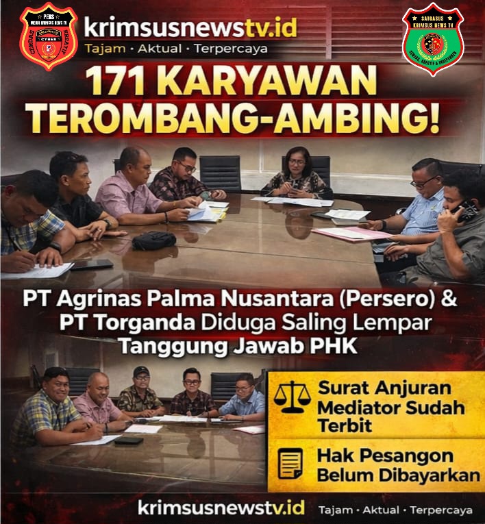Sumatera Utara // krimsusnewstv.id — Sebanyak 171 karyawan mengaku dizalimi akibat ketidakjelasan status hubungan kerja antara PT. Agrinas Palma Nusantara dan PT. Torganda. Polemik ini menyeret operasional perusahaan di dua kabupaten dan berdampak langsung pada ratusan kepala keluarga di Sumatera Utara.