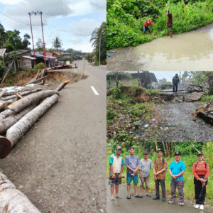 2. Jalan Soekarno Hatta, Desa Simaeasi, Kecamatan Mandrehe — Longsor juga terjadi di bahu jalan. Bupati Nias Barat, Eliyunus Waruwu, langsung memerintahkan Dinas Pekerjaan Umum untuk melakukan langkah tanggap darurat. Saat ini, bahu jalan telah diperkuat dengan tumpukan batang kelapa untuk proses pemancangan serta penahan longsor.