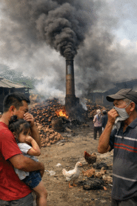 “Setiap kali mereka membakar arang, asapnya masuk sampai ke dalam rumah. Baunya menyengat, bikin sesak napas. Anak saya sering batuk dan matanya perih. Bukan cuma anak saya, ternak ayam dan bebek juga banyak yang nyekrek lalu mati,” ujar Jepri, salah seorang warga, Senin (21/12/2025).