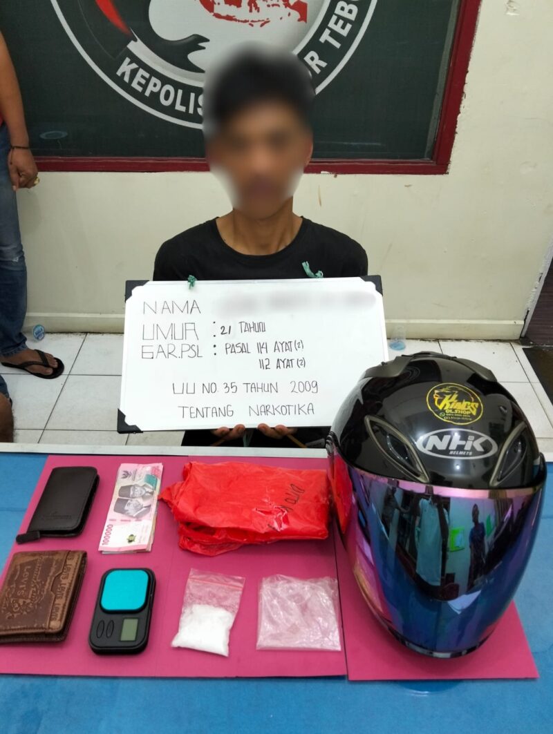 Kapolres Tebo AKBP Triyanto, S.I.K., S.H., M.H., melalui Plt. Kasi Humas Polres Tebo Ipda Ardimal Hagia menyebutkan bahwa penangkapan dilakukan berdasarkan laporan warga yang resah dengan aktivitas peredaran narkoba di daerah tersebut. “Saat dilakukan pemeriksaan, pelaku mengakui barang bukti tersebut adalah miliknya,” ungkap Ipda Ardimal.