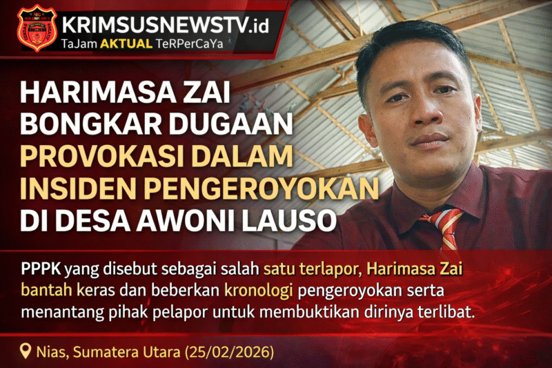 Nias, Sumatera Utara // Krimsusnewstv.id Tuduhan keterlibatan dalam kasus pengeroyokan yang terjadi di Desa Awoni Lauso, Kecamatan Idanogawo, Kabupaten Nias pada 25 Februari 2026, dibantah keras oleh Harimasa Zai, seorang Pegawai Pemerintah dengan Perjanjian Kerja (PPPK) yang namanya disebut sebagai salah satu terlapor. 07/03/2026