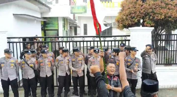 “Bapak Kajari sedang mengikuti rapat melalui Zoom dan kami diperintahkan untuk mewakili beliau,” jelas Kasi Intel di hadapan massa.