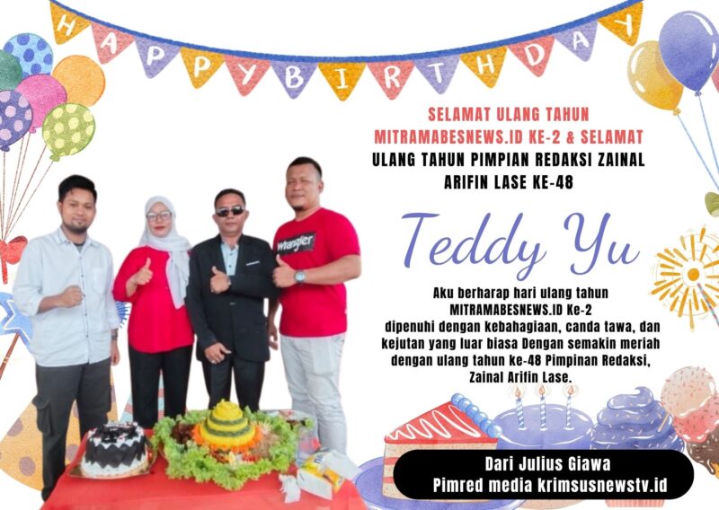 Apresiasi juga datang dari Julius Giawa, Pimpinan Redaksi Media Krimsusnewstv.id. Ia menyampaikan ucapan selamat ulang tahun baik untuk MITRAMABESNEWS.ID maupun untuk sahabat seprofesinya, Zainal Arifin Lase.