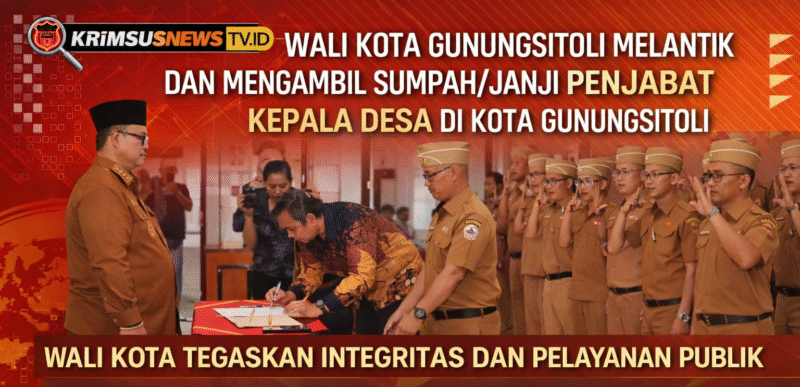 Gunungsitoli // Krimsusnewstv.id – Wali Kota Gunungsitoli, Sowa’a Laoli, secara resmi melantik dan mengambil sumpah/janji 16 Penjabat Kepala Desa di wilayah Kota Gunungsitoli. Prosesi pelantikan berlangsung tertib dan khidmat di Ruang Rapat II Kantor Wali Kota Gunungsitoli, Jumat (13/03/2026).